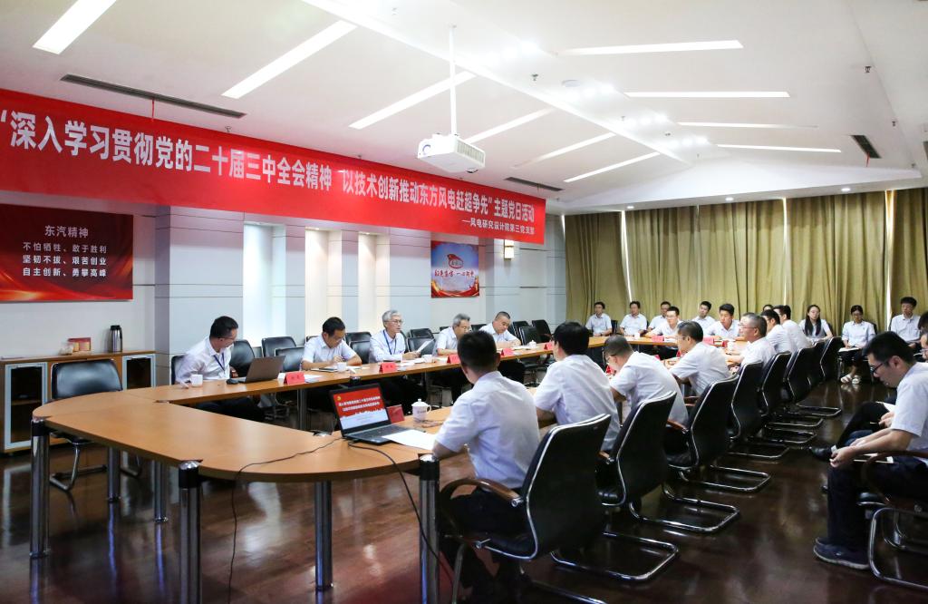 8月28日,集团公司党组副书记、总经理张彦军参加联系党支部东方风电风电研究设计院第三党支部主题党日活动,并宣讲全会精神。张彦军强调,支部全体党员要坚持以习近平新时代中国特色社会主义思想为指导,深入学习贯彻全会精神,在研发创新、技术攻关、质量提升、设计降本等各方面工作中追求精益求精,切实推动集团公司“领先战略”落实落地。